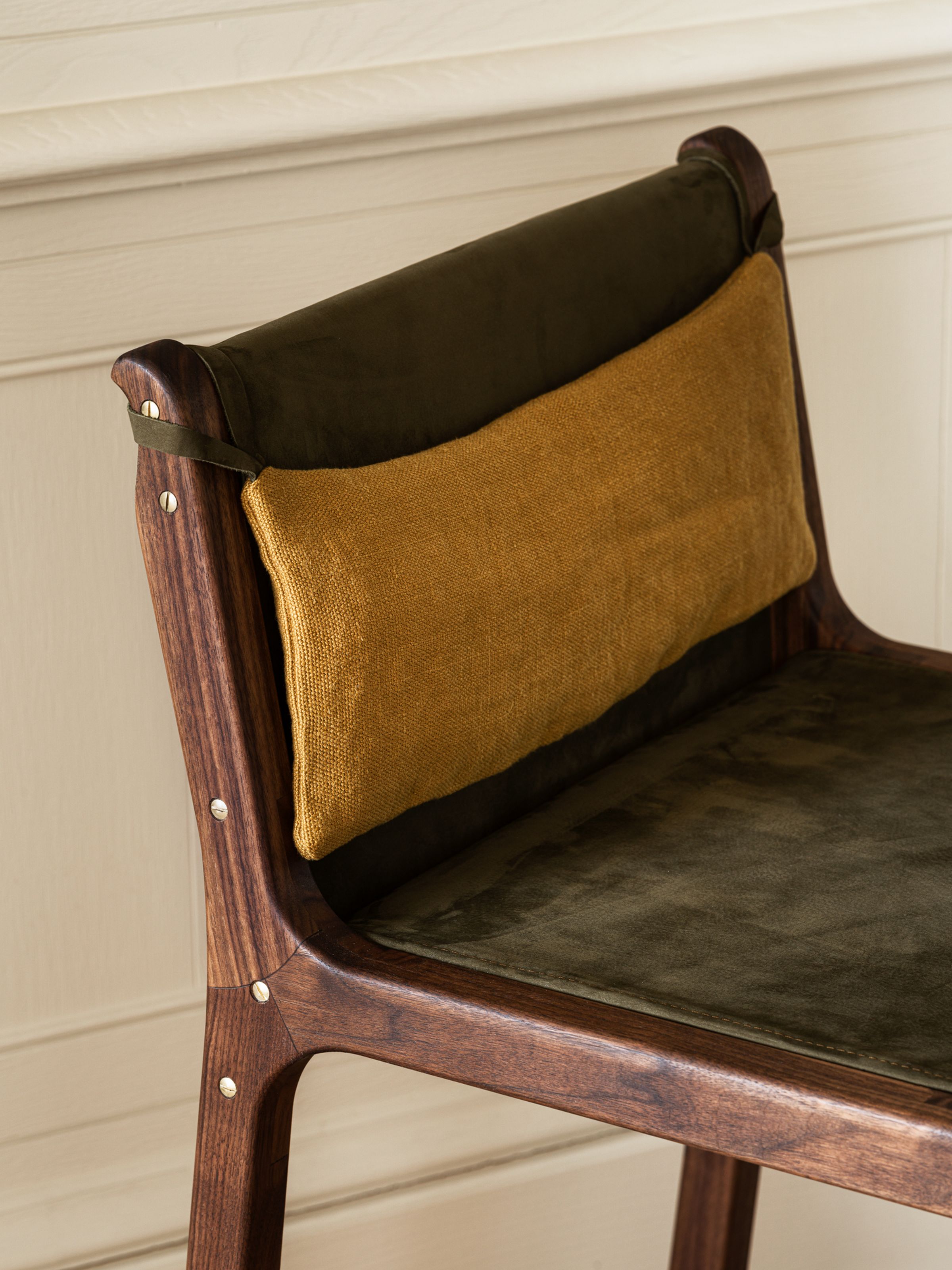Met zijn hogere houding en vertrouwde karakter vertaalt de Ida barkruk de warmte van de eetkamerstoel naar een nieuw silhouet. Rijk walnoothout en tastbaar leder komen samen in een harmonieuze compositie.