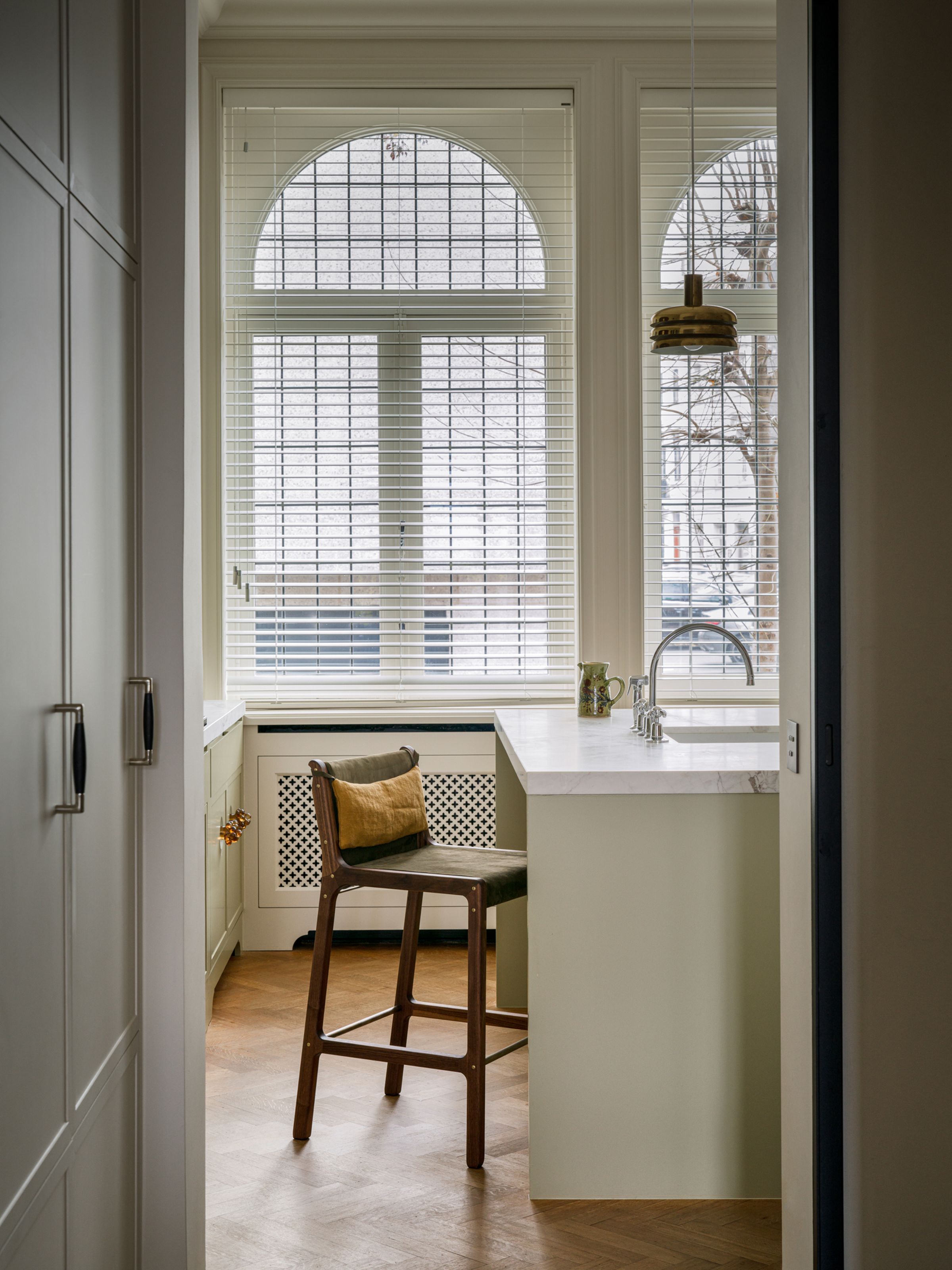 "De Ida bar stool tilt de warmte en elegantie van de eetkamerstoel naar een hoger niveau, met sculpturale lijnen en verfijnde details."