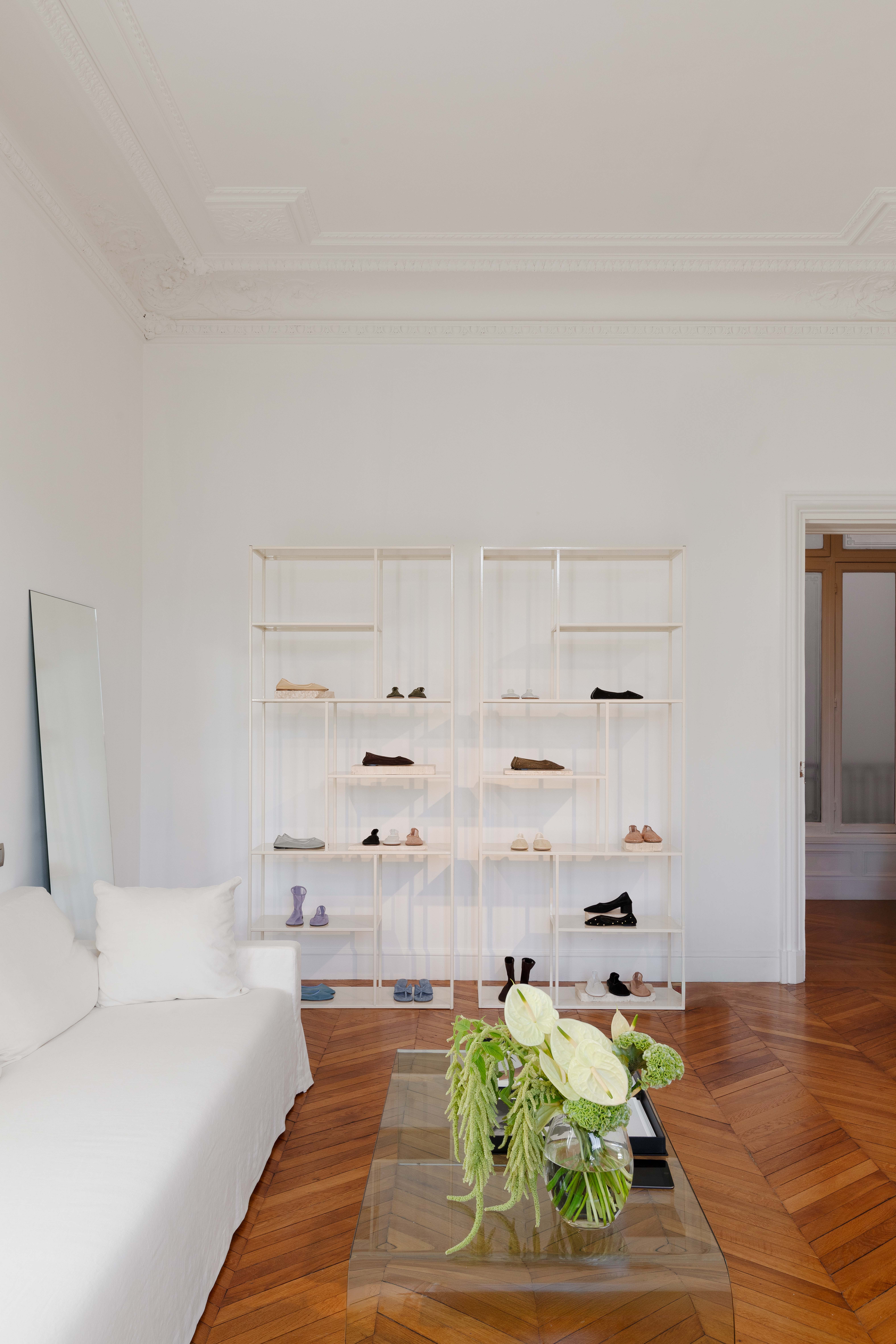 In het hart van Parijs vormde onze sofa een verfijnd ankerpunt: een kalme, elegante aanwezigheid tussen sterke silhouetten en conceptuele mode. Het strakke witte ontwerp – tegelijk modern en tijdloos – sloot moeiteloos aan bij de minimalistische maar krachtige beeldtaal van Marie Adam-Leenaerdt.