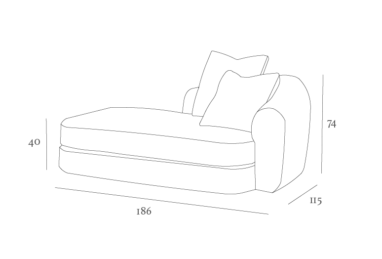 Sophia’s sierlijk rugleuning gaat naadloos over in een uitgestrekte zitting en vormt zo een elegant silhouet. De chaise longue biedt ongeëvenaard comfort en is een opvallende eyecatcher die elke kamer verfijning en karakter geeft.